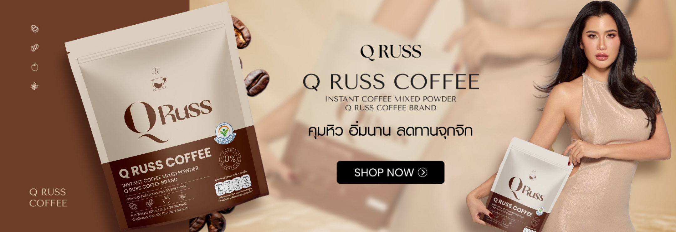 คิว รัสส์ คอฟฟี่ ขนาดสินค้า : 15 กรัม X 5 ซอง