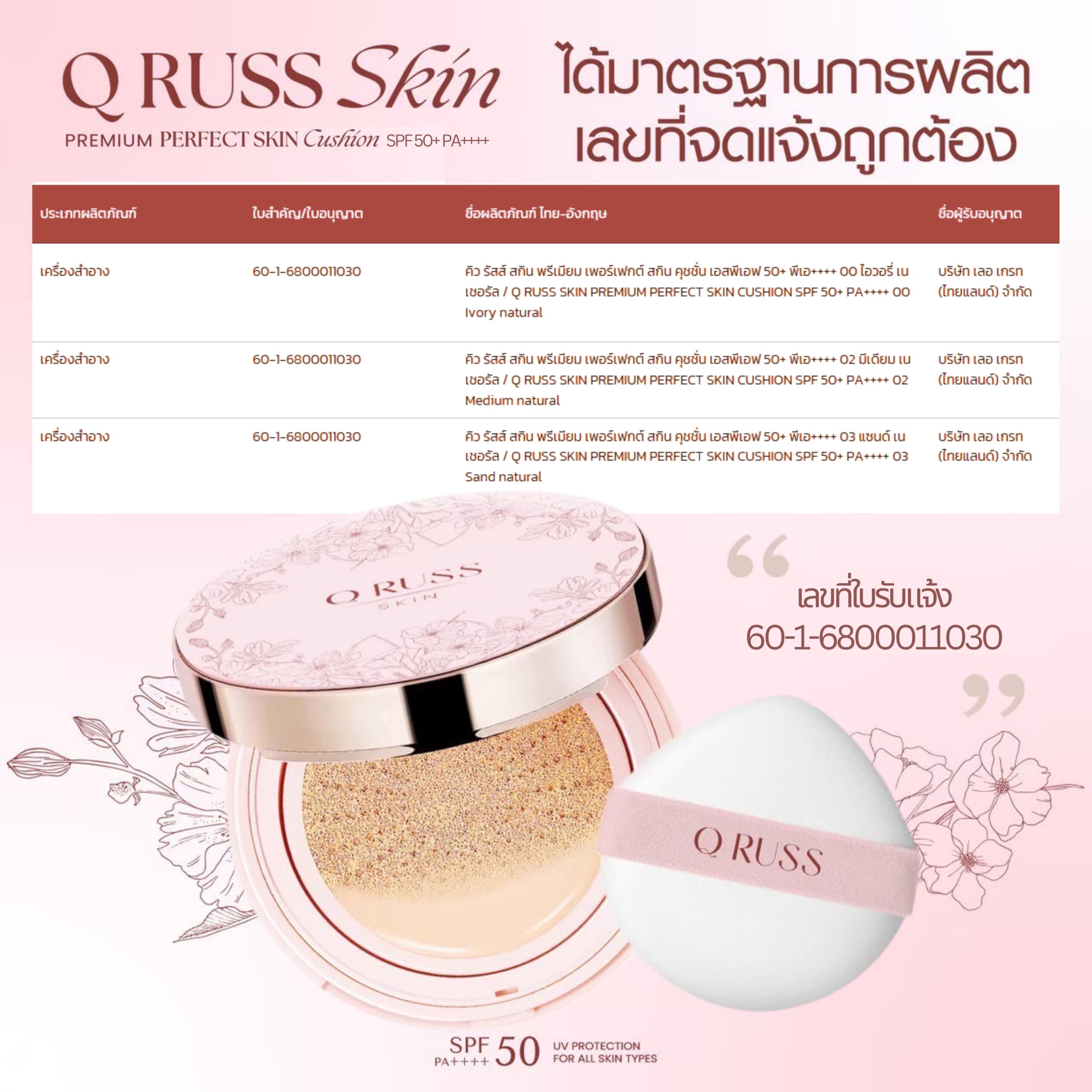 Q RUSS Skin Premium Perfect Skin Cushion SPF50+ PA+++ ขนาด 15 กรัม